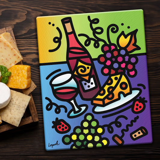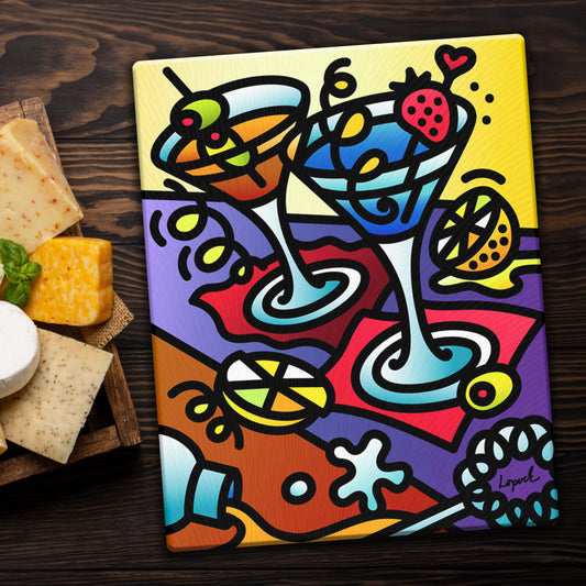 Entertain guests with these vibrantly fun glass cutting / serving boards. Humorous "adult beverage" designs in tempered, textured glass are fancy, fun and functional. A popular gift!